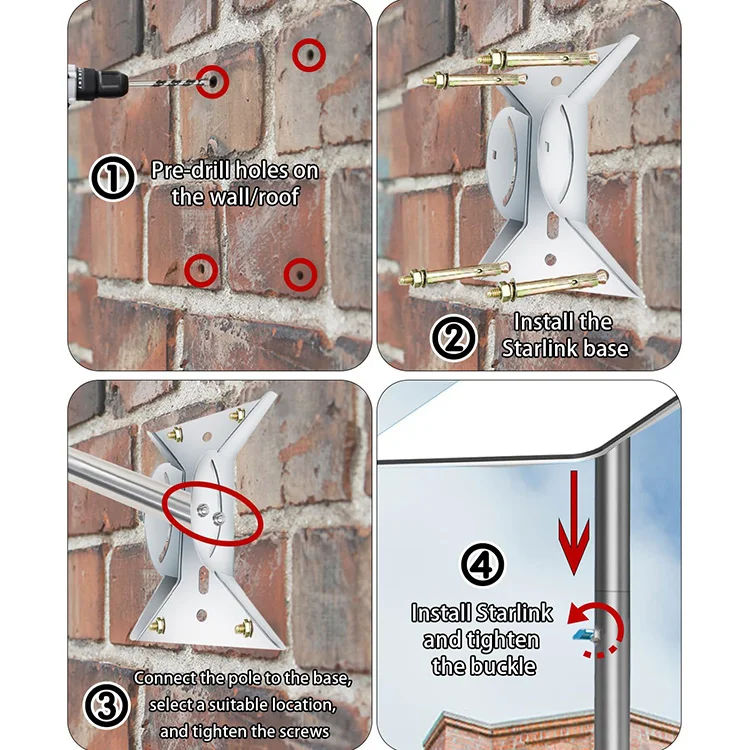 Our StarLink Mount is different from others. The surface layer of the mount is e-coated plus galvanised steel, which does not affect the signal. Suitable for outdoor use and can withstand different weather conditions. Ensures stability and strong load-bearing capacity even in windy weather.