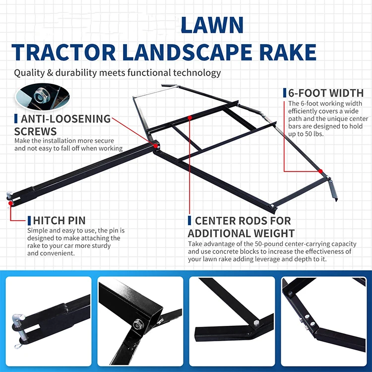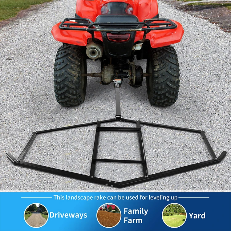 Durable and rust proof This Driveway Drag Harrow is Sturdy, all-welded heavy Carbon Steel construction for maximum strength and safe traction.Black powder coating ensures a long service life and long-lasting aesthetic appearance.