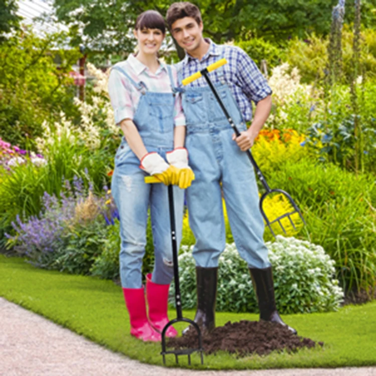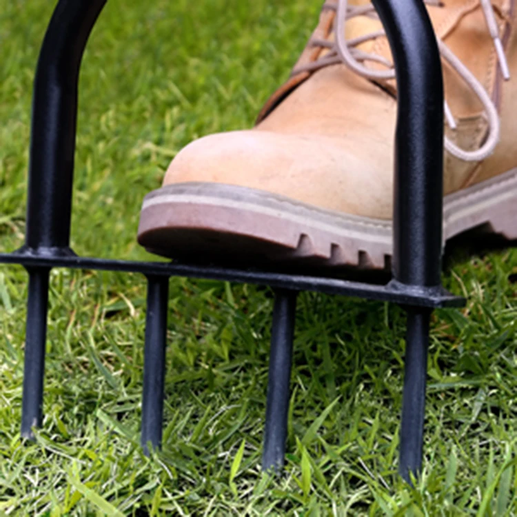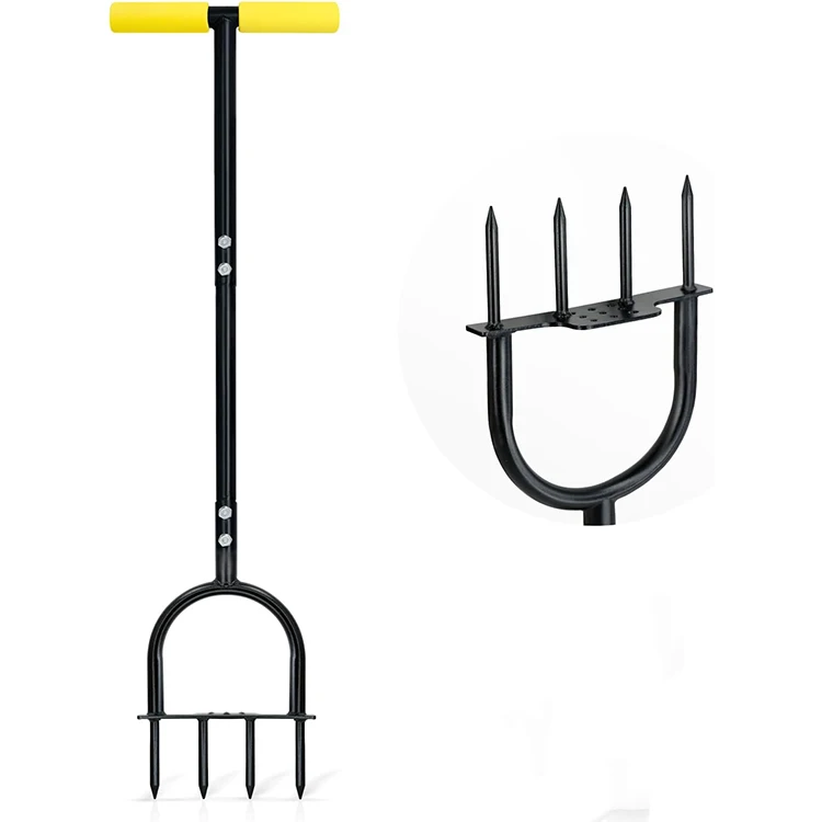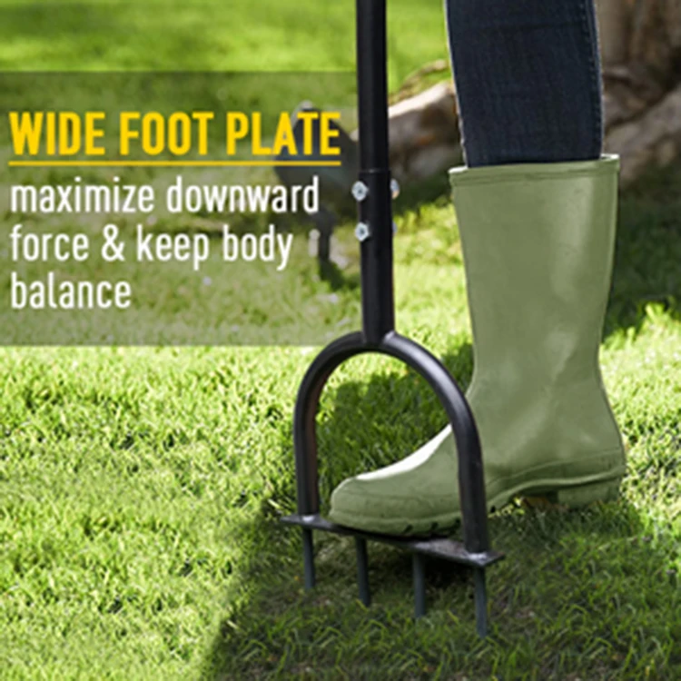 JH-Mech Heavy Duty Manual for Compacted Soils Non Slip T Handle Wide Foot Plate Carbon Steel Lawn Spike Aerator
