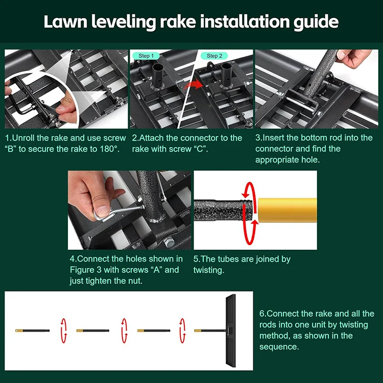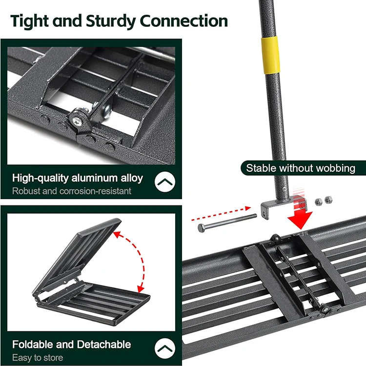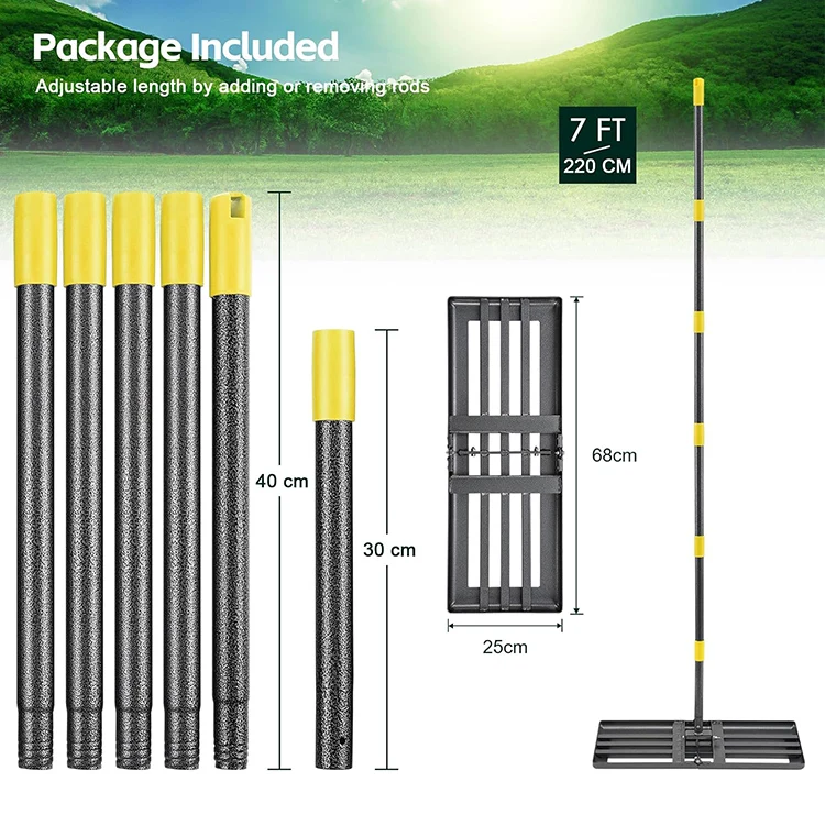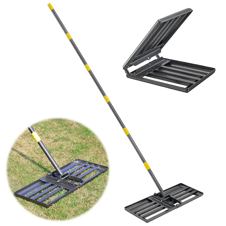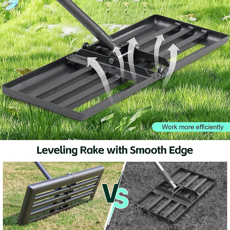 JH-Mech Heavy Duty Smooth Edge Detachable Foldable Stable Wobbing Yard Golf Carbon Steel Lawn Levelling Rake