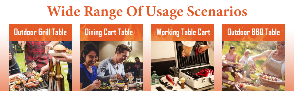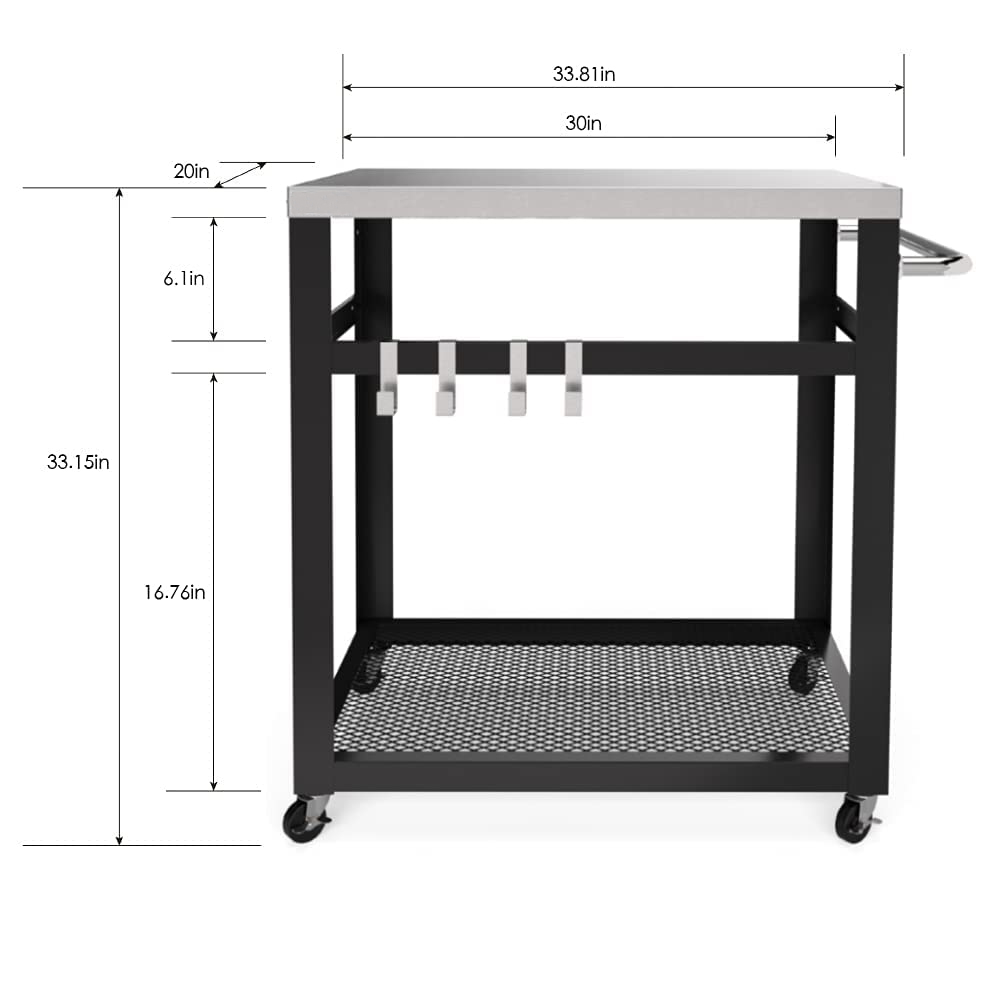 Bidirectional Handle Ddesign WEasily Move The Dining Table From Any Side 4 Detachable Hook Freely Hanging On The Four Sides Of The Grill Cart