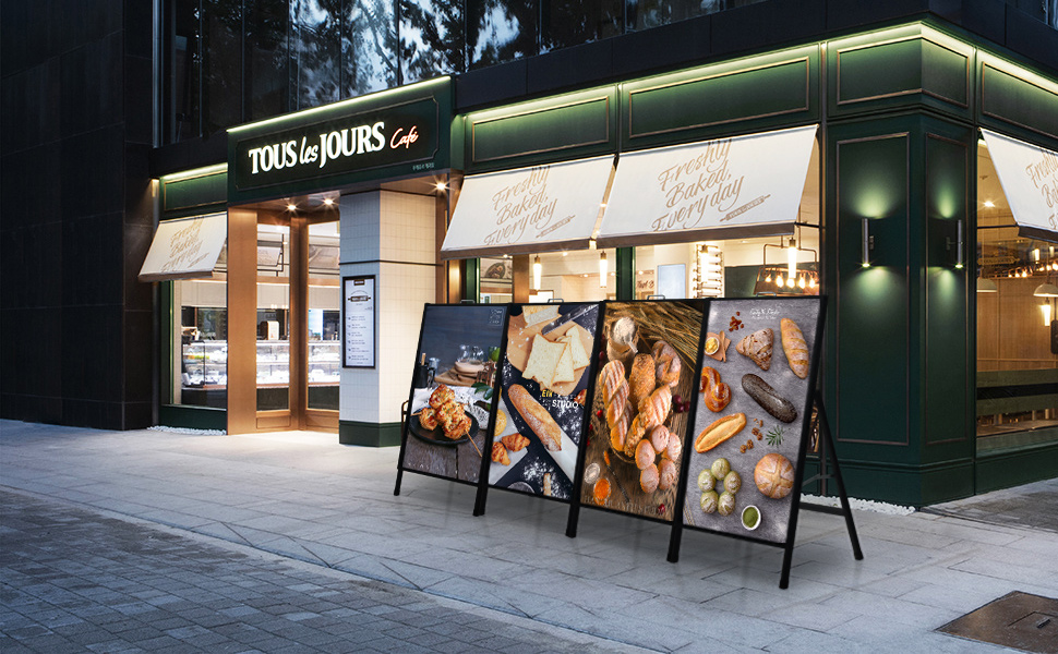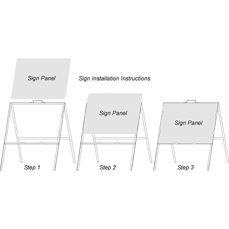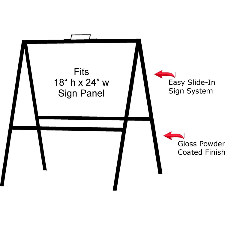 Our portable display stand has a built-in handle that allows you to carry and transport the A frame easily. Wherever there's an event or open house, you can set up a sidewalk frame sign to display your sign. Compatible with sign panels up to 1/8" thick.