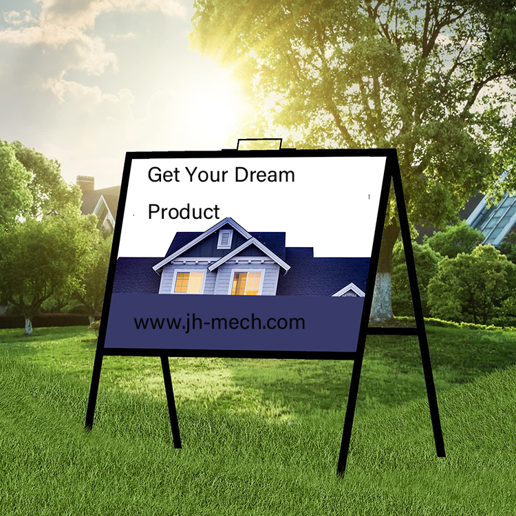 JH-Mech Yard Signs and Stakes Custom Outdoor H Shape Design Black Powder Coated Metal A Frame Sign Stand