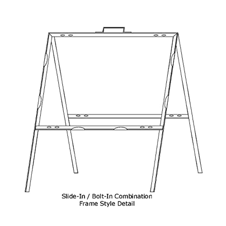 Our sidewalk sign frame stand is made for your convenience with its easy slide-in or bolt-in sign panel installation for signs up to 1/8-inch thick. A suitable poster board or street sign will glide through the frame, allowing you to switch signs when needed.