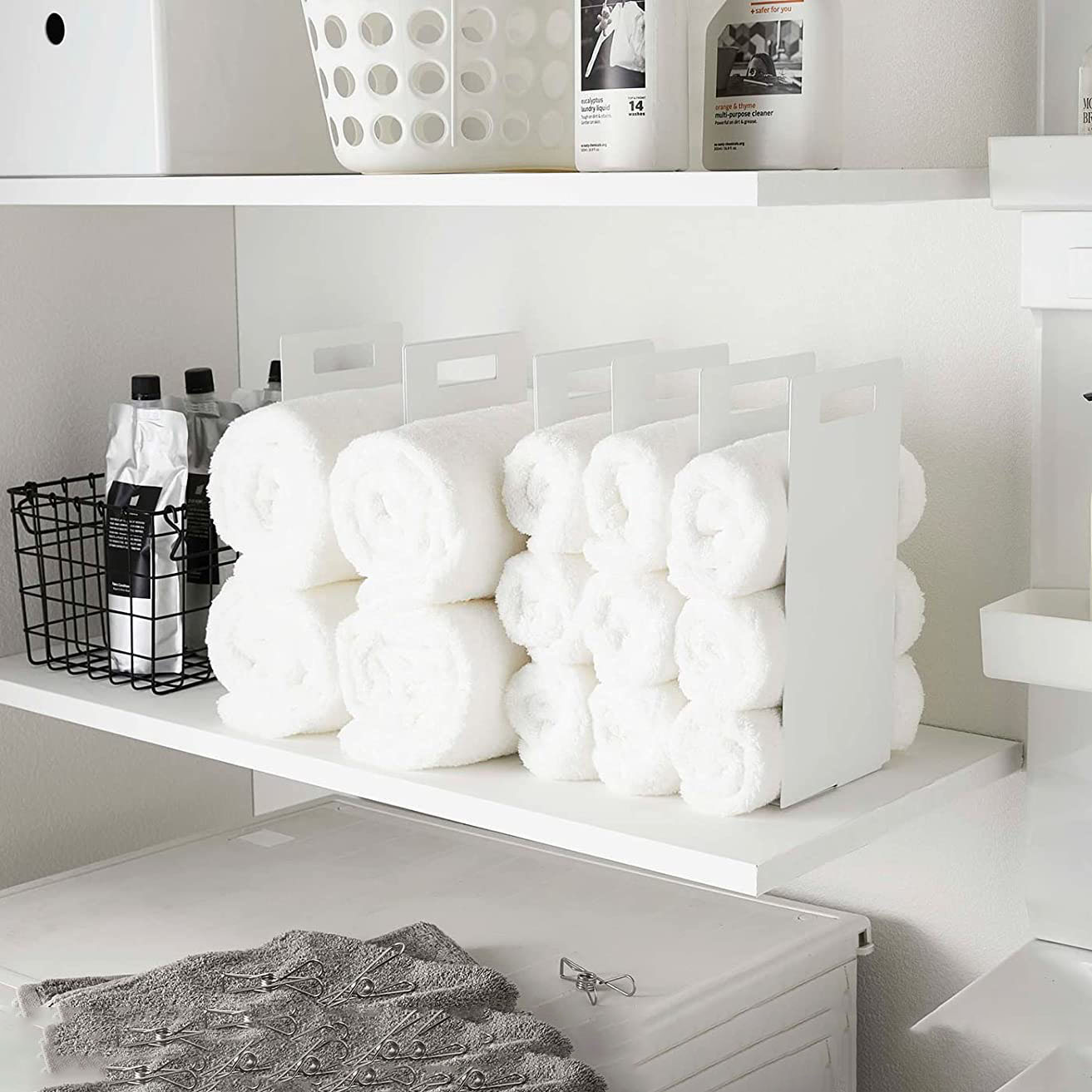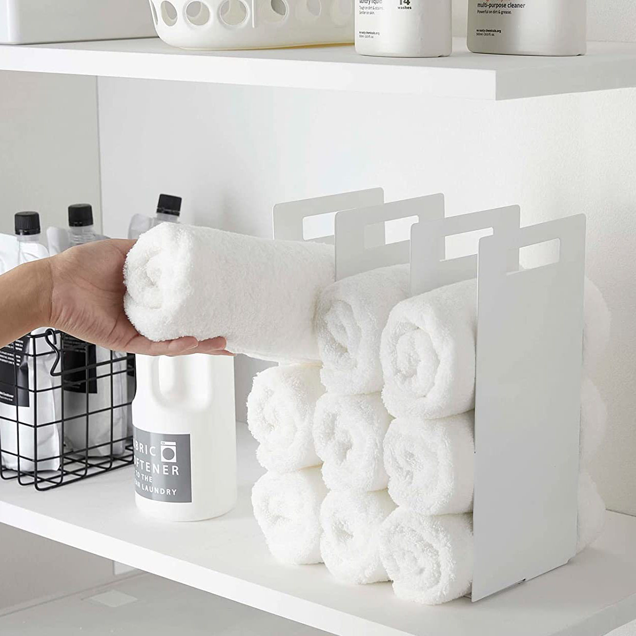 JH-Mech Durable Table Top Towel Storage Organizer Interlocking Powder-Coated Steel Displaying Towel Rack