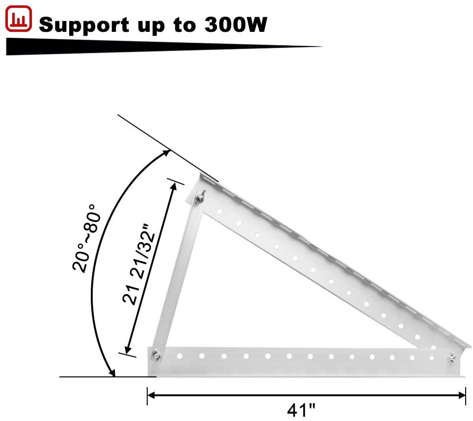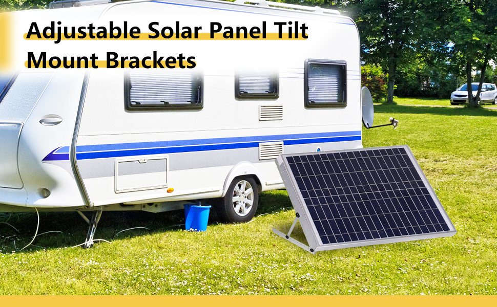 2. Energy-Efficent : Tilting design will get up to 25% more sunlight than laying them flat, Adjustable angle which help your solar panel to generate more power in different season.