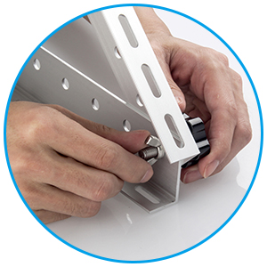 1. With the multiple holes on two bars, solar panels can be adjusted to any angle for maximum sun exposure, use M8 butterfly-nut and M8 flower-head bolt to set up the triangle bracket, use M6 hex flange nut, washers and M6 hex bolt to fix the solar panel frame.