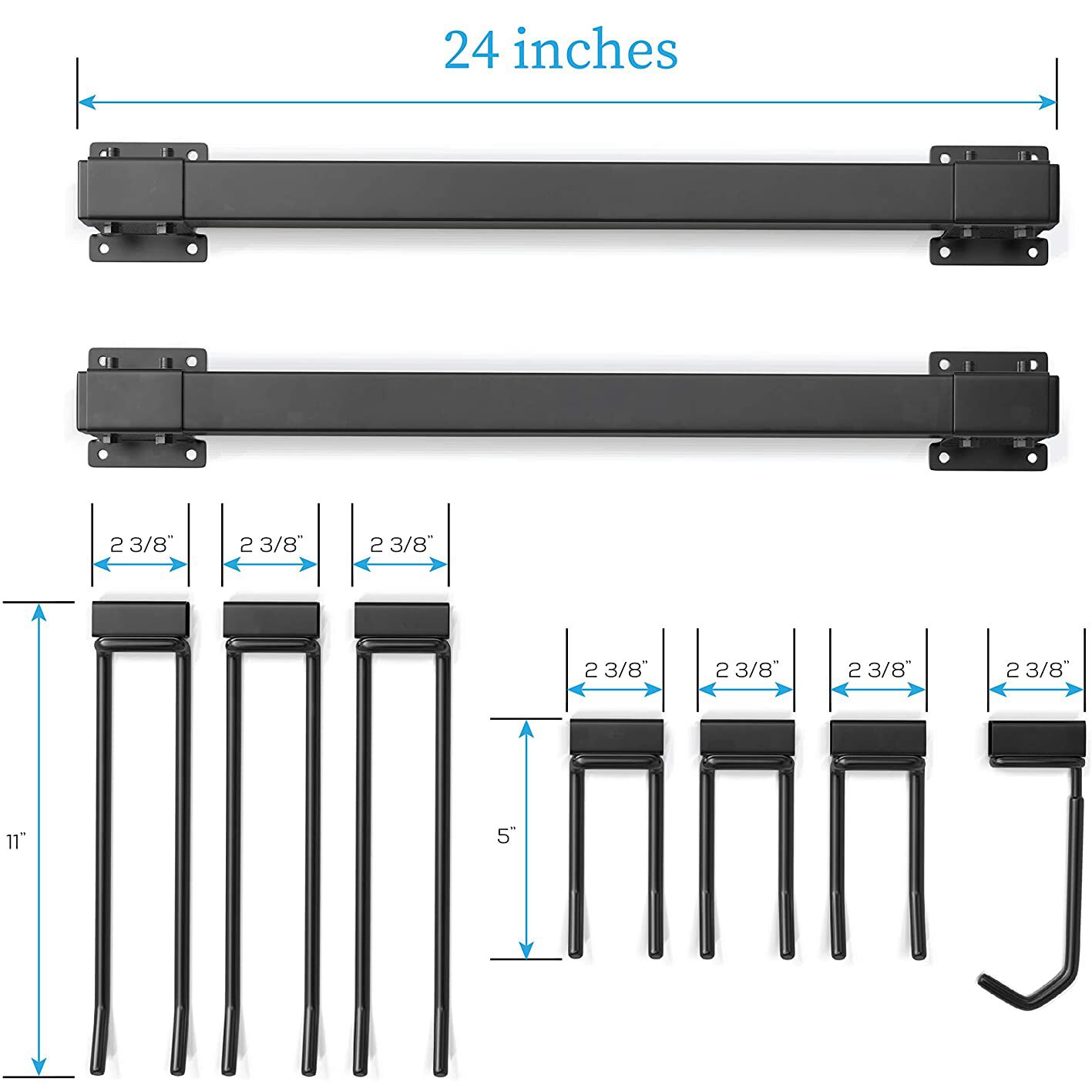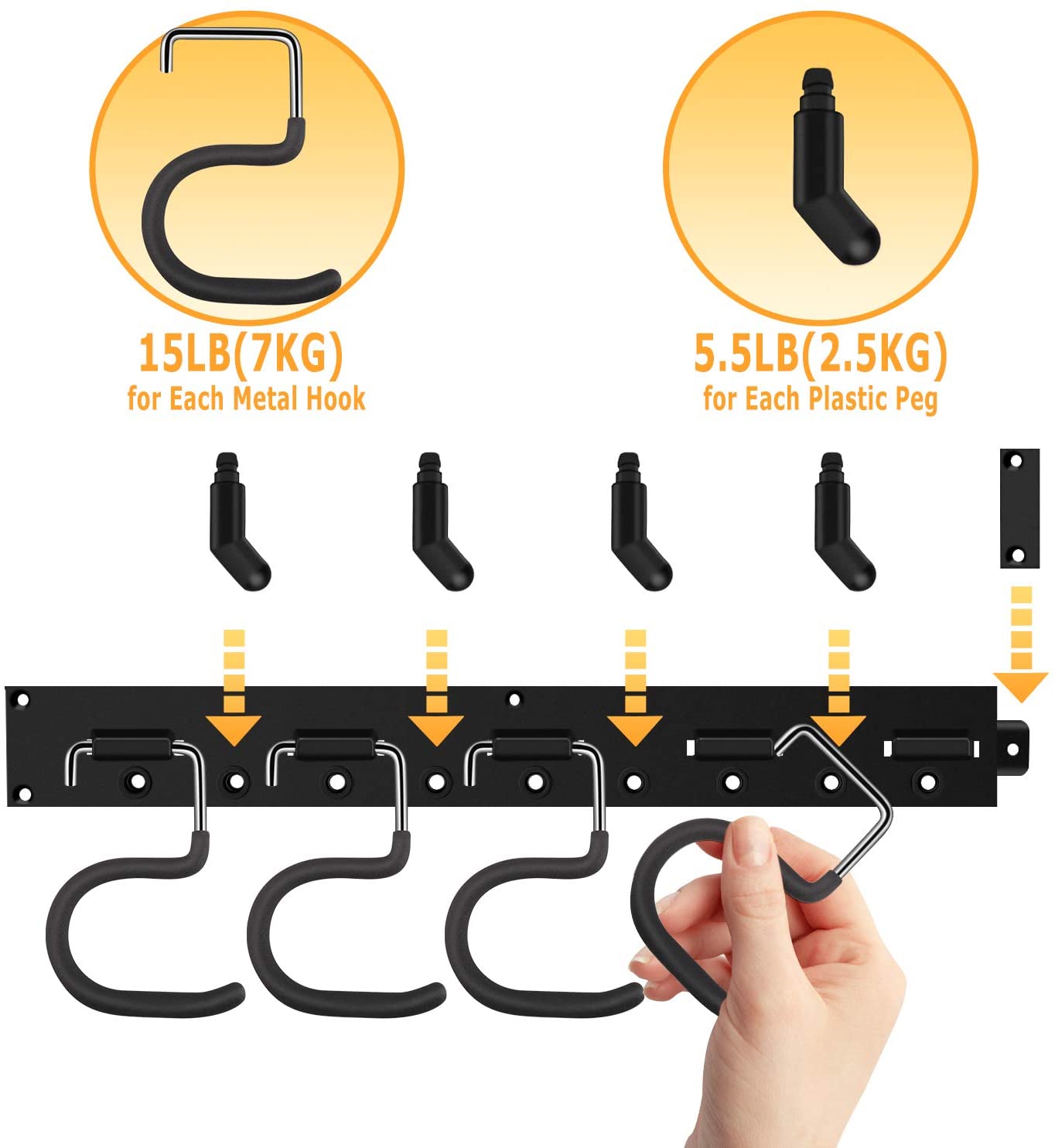 Suitable for organizing garage tools or garden tools and all kinds of tools. Such as rakes, shovels, push brooms, bikes, bags, towels, robes, keys, shirts, pants, umbrellas, rain boots and other hand tools, etc. You can use it to hang all the things you want to organize.