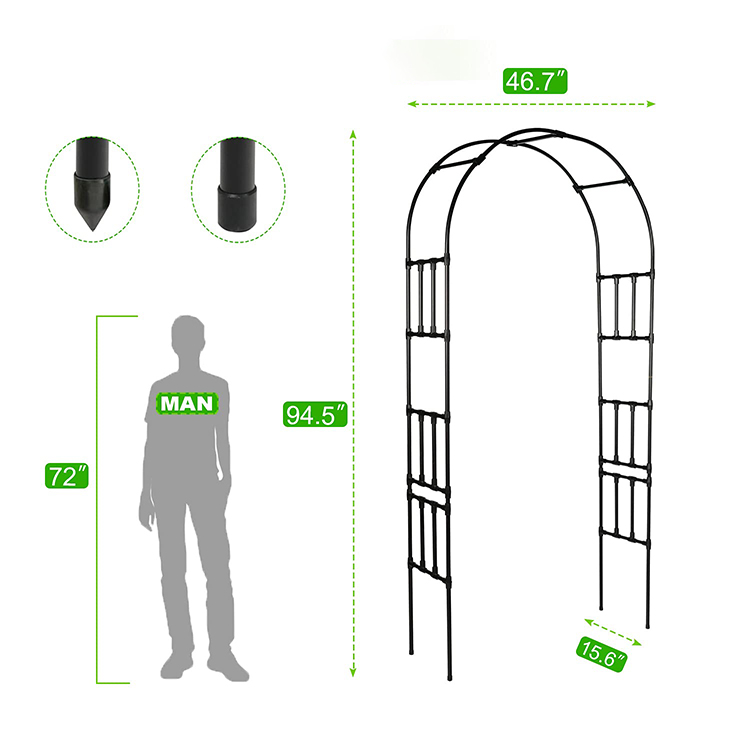 1. Color powder coated arch, heavy duty metal tubular construction. Hardware and installation instruction are included.