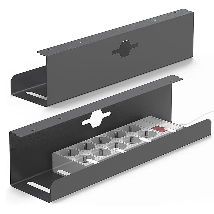Can be installed under the desktop, suitable for height-adjustable desks or ordinary desks. The top opening and sidewall cutouts design make your computer cables on your desktop can pass freely, prevent wires from tangling, especially when you moving the desk up and down.