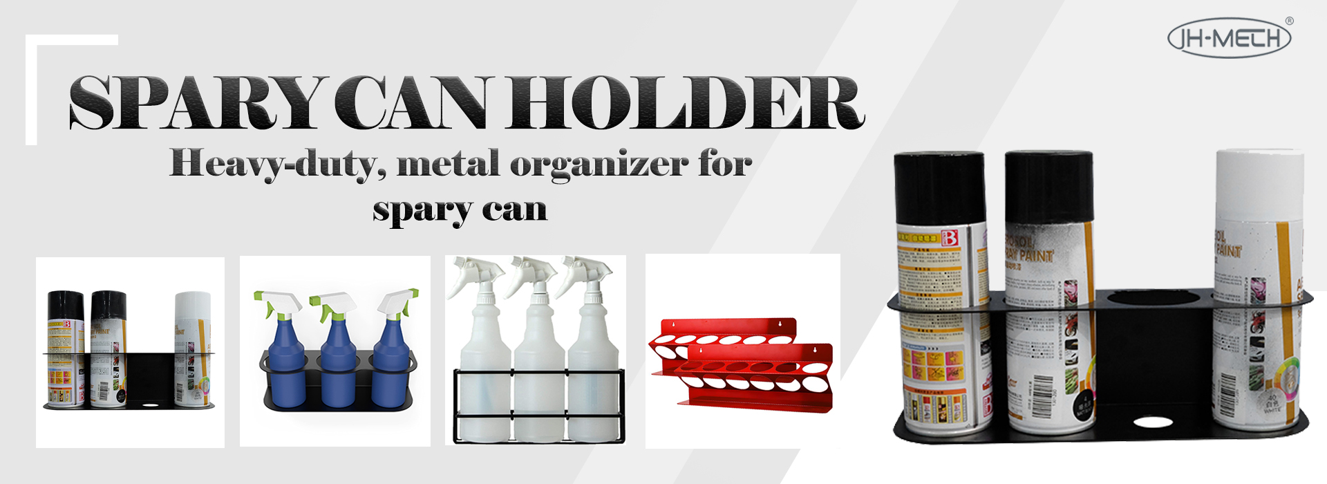 Metal Spray Can Holder close at hand - with cutouts for straws and tubes, too Versatile, attractive, and easy to set up Metal Spray Can Holder like spray paint, lubricating solutions, canned air, and cleaners seem to end up in the oddest places. When you're working on a car, spray painting a DIY project, or doing arts and crafts, having visible and accessible tools saves space and lets you spend more time on your hobbies. The Metal Spray Can Holder system is powder-coated matte black to help it blend in more seamlessly with your tools and workspace.