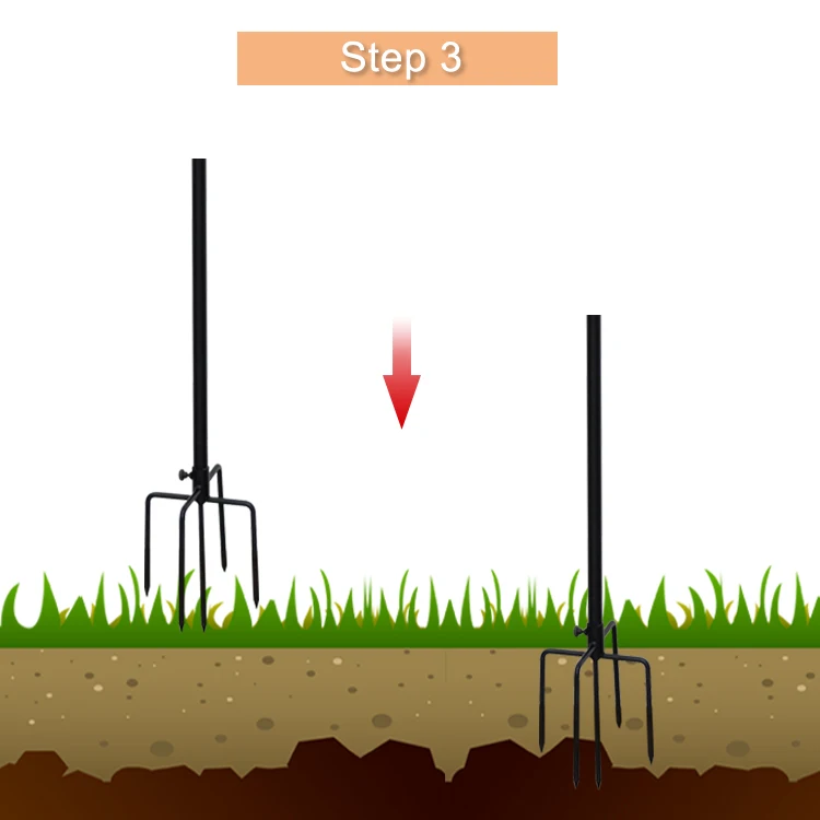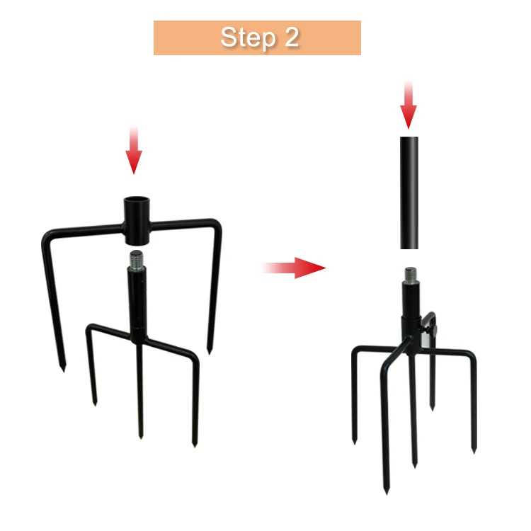 String light pole for outdoor is designed with screw-in joint to connect and a five long prongs base, which could insert soildeeply at 9". It will keep stability in the wind and collision after repeated tests, safe and secure.