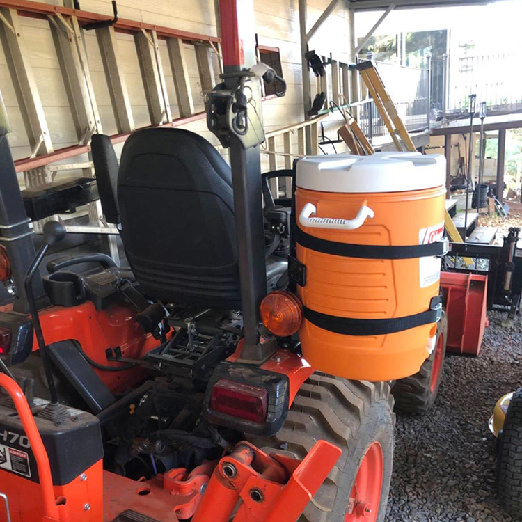 JH-Mech Steel Beverage Cooler for Truck Cart UTV Mower or Landscape Trailer Mount Rack Holder Water Cooler Holder is the perfect way to keep your landscaping tools secure while driving. This rack can be mounted on an open or enclosed trailer.