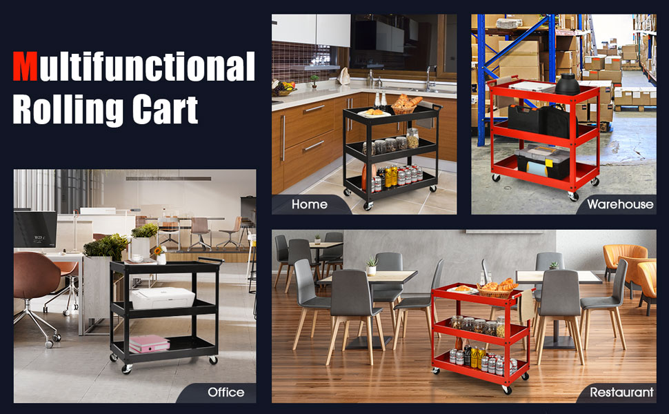 The heavy duty tool cart with compact size is perfect for small apartments with limited space, and you can use this metal utility cart to store books, tools, etc.