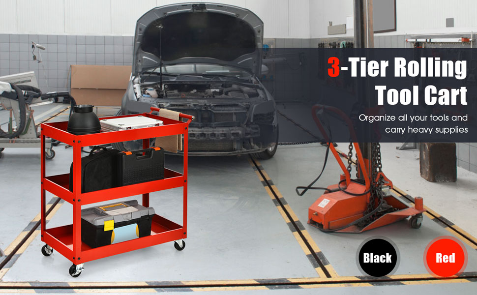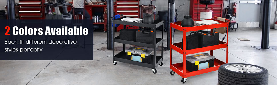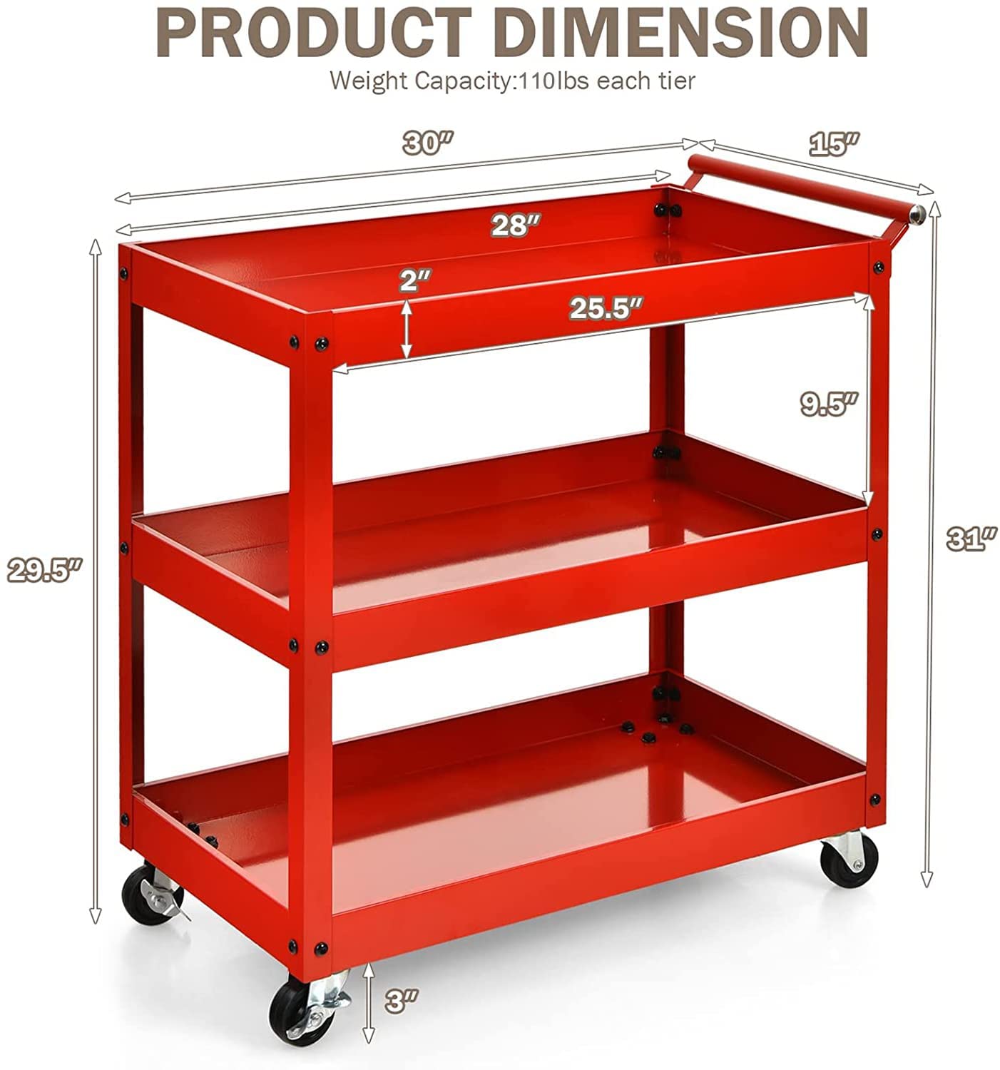 Our utility tool cart features spacious storage space, which comes with 3-tier 25.5” x 15” layer. Each layer is 2" deep and can accommodate some commonly used items for easy access.