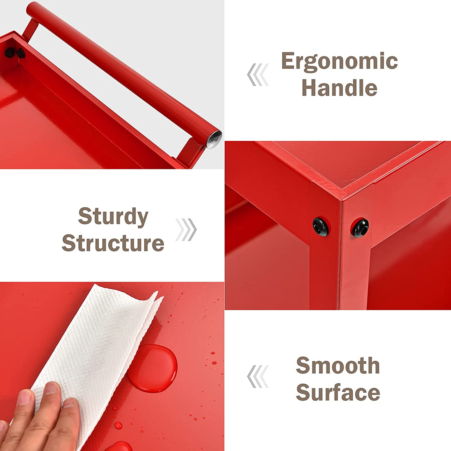 Our utility tool cart features spacious storage space, which comes with 3-tier 25.5” x 15” layer. Each layer is 2" deep and can accommodate some commonly used items for easy access. You can also place different tools to improve work efficiency.