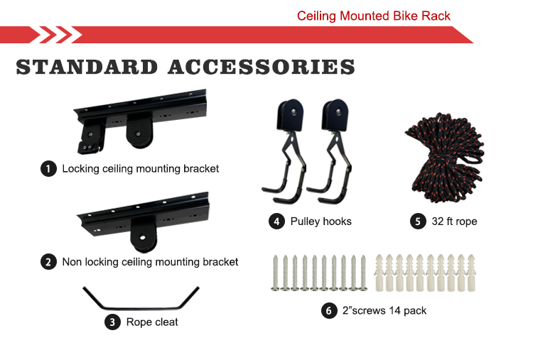 The garage bike storage could accommodate one bicycle and hold up to 100 lbs. And these ceiling bike rack system makes the bicycles floating on the floor to free up some space for your garage or house.