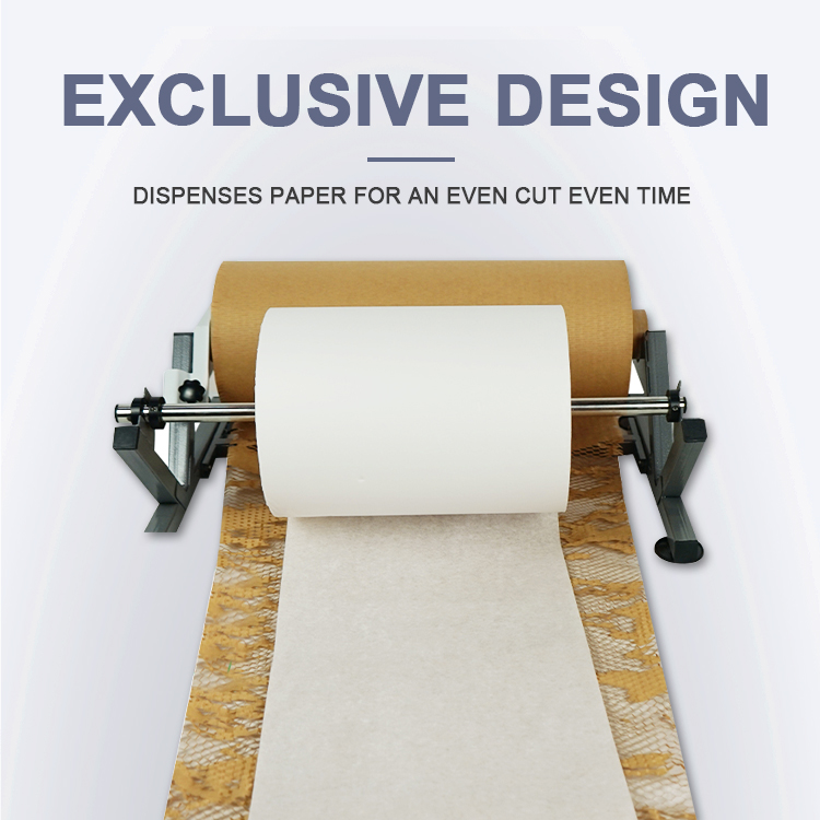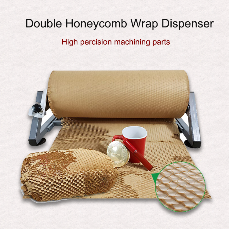 The honeycomb paper roll will extending when go through this dispenser, make it easy and flexiable to wrapping any product.