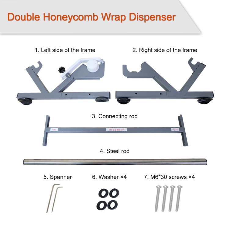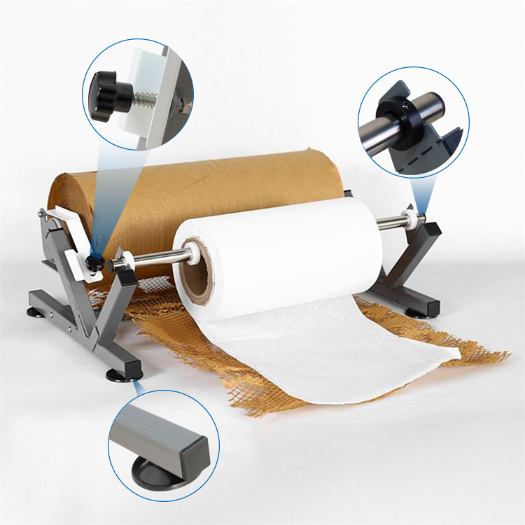 The honeycomb paper wrapping dispenser assists the honeycomb paper packaging, which is convenient for the honeycomb paper to stretch and unfold.