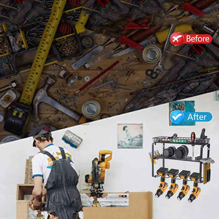 JH-Mech Cordless Tool Organizer Drill Holder ODM Black Metal Powder CoatedDrill Storage Organizer for Drill Spanner Storage