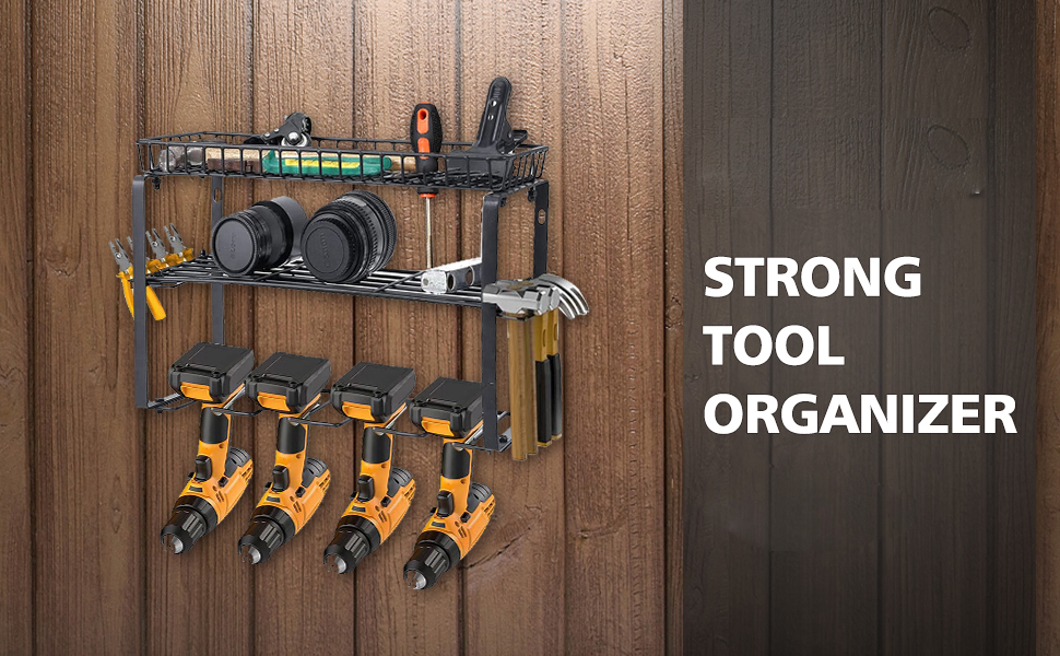 This heavy-duty design power tool rack will help you load up to 100 pounds of tools using all 4 wall anchors.
