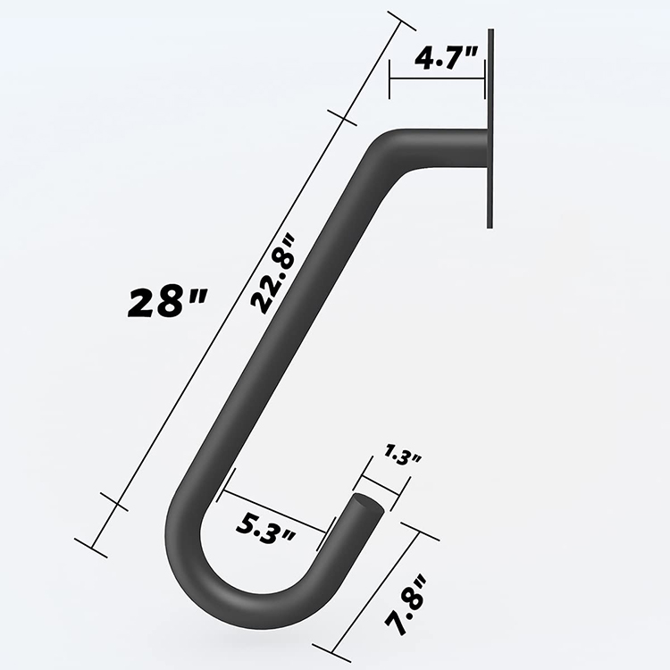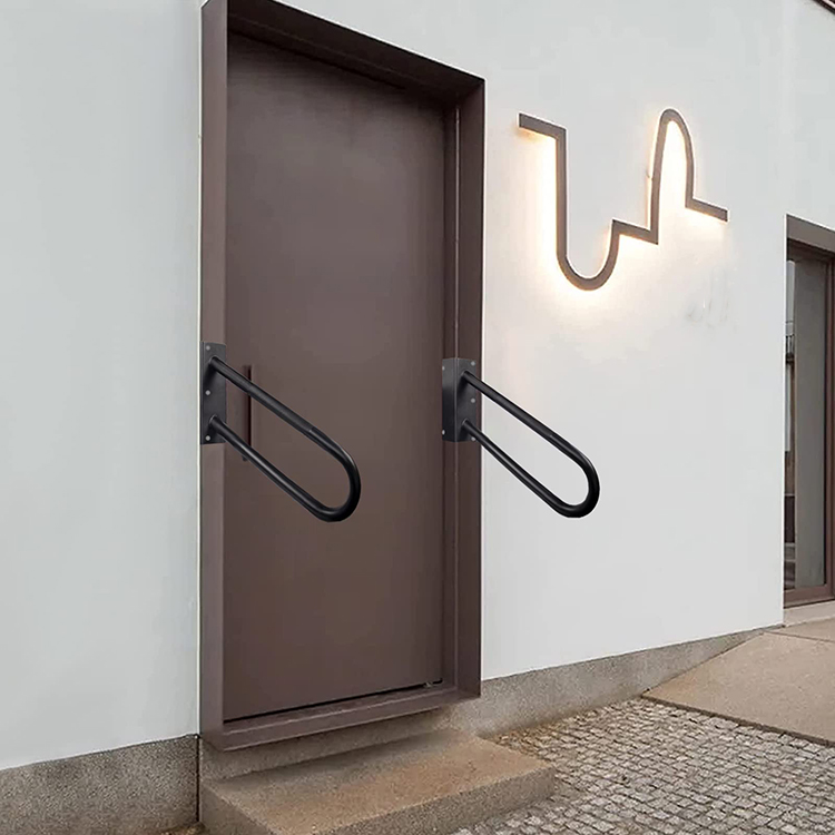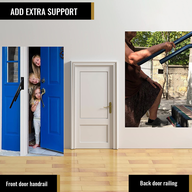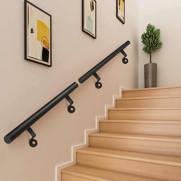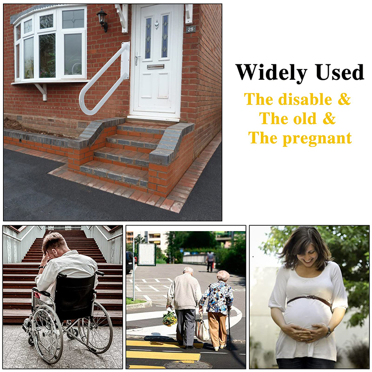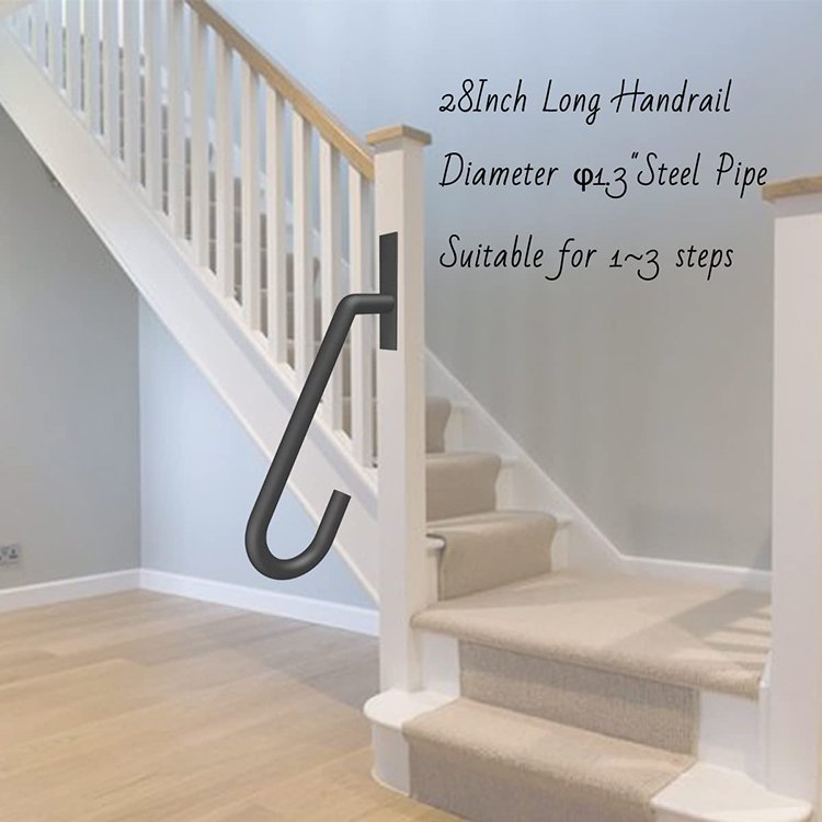 28Inch long handrail, Made of high quality φ1.3" diameter steel pipe welded, which is treated with multi-layer Powder Coated,comfortable to hold, suitable for 1-3 steps,The slope of the handrail matches the stairs perfectly.