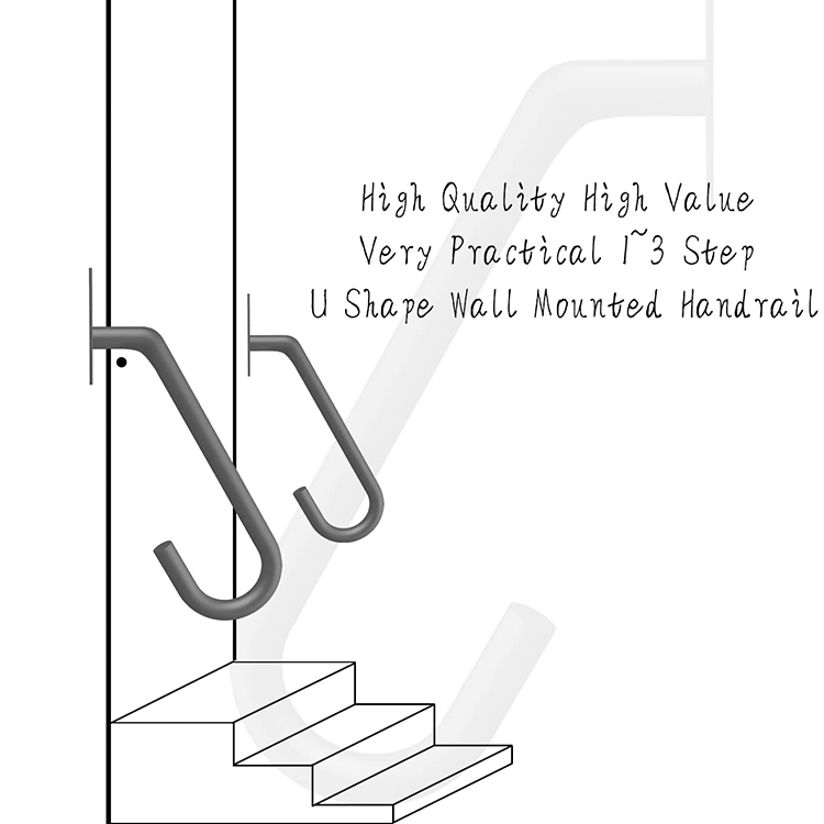 JH-Mech Hand Rail for Stair Custom Comfortable Grip Multi-layer Powder Coating Carbon Steel Handrail Wall Mount 1 to 3 Steps