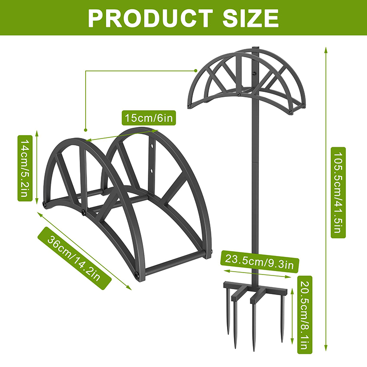 It is designed to hang the hose, bird feeders, wind chimes, lanterns etc. It allows you to hang a length of hose on the curved hook the hanger is a must-have garden accessory, no matter how big or small your garden is.You can mount the garden hose hanger on the side of fences, wooden walls, trees, houses or walls, etc.