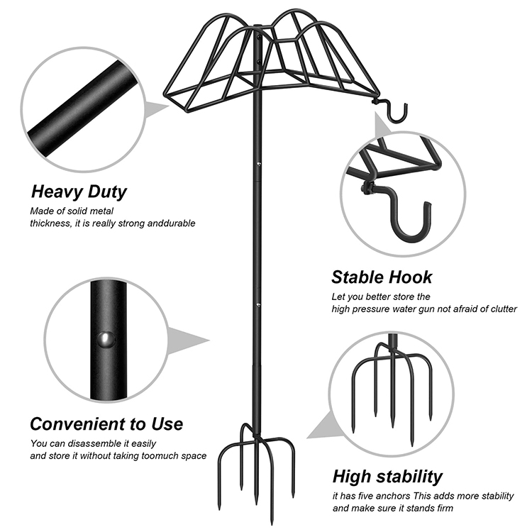 JH-Mech hose holder is made of heavy metal material and can bear up to 125ft of water pipes. Sufficient height to keep plumbing neat and efficient, and beautify your private backyard.