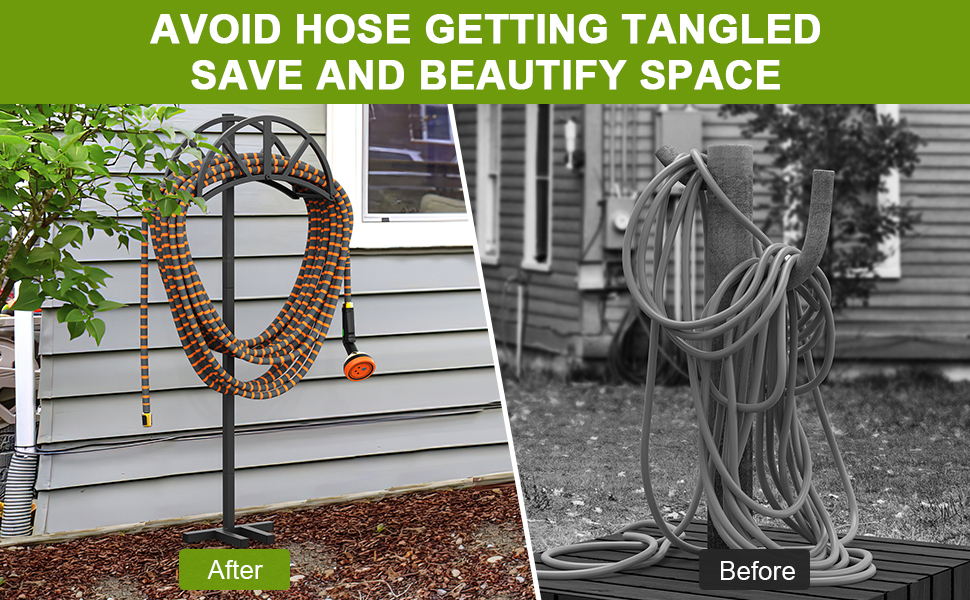 With a total height of 54.1 inches, this hose holder stand keeps hoses off the floor, so you don't have to bend down to organize them while keeping them organized.