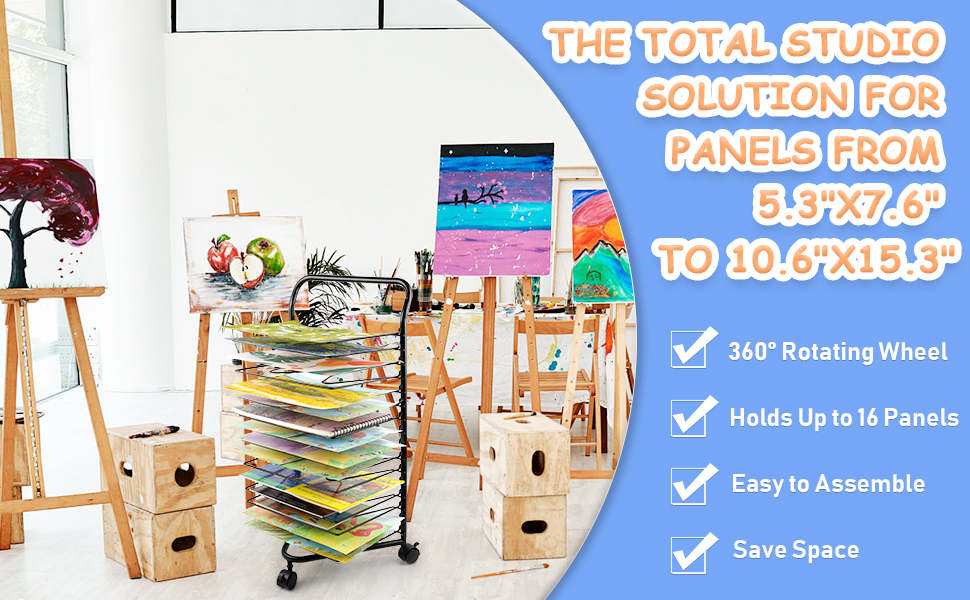 With 16 shelves, you can make sure that watercolor and painting projects dry properly.