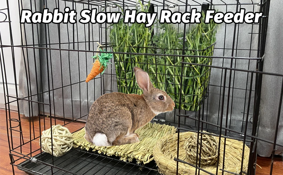 The rabbit slow grass rack is fixed by hooks and can be hung inside and outside the cage.