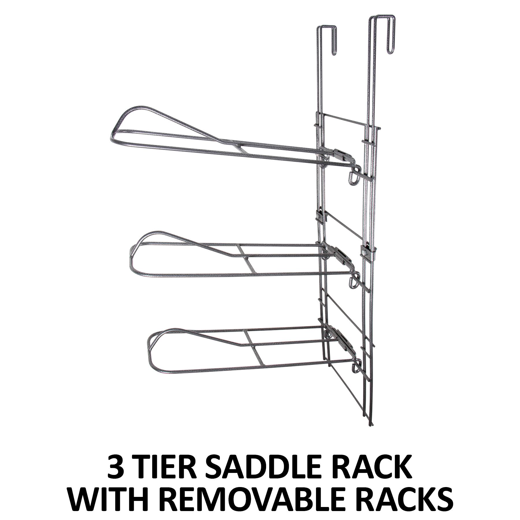 JH-Mech New Comfortable and Durable Sliding Saddle Rack For Horse Trailer 3 Tier Rolling Saddle Rack Cart For Sale