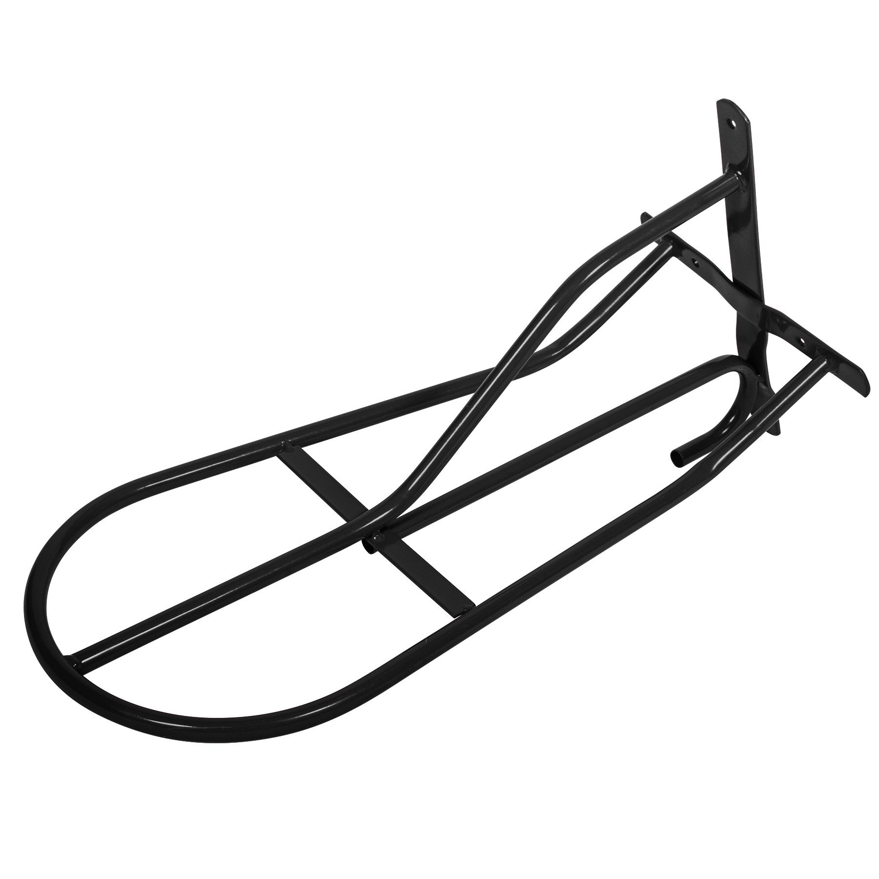 Keep your saddle safe and secure with the Weaver Leather Horse Saddle Stand. This black metal horse saddle stand features a bridle hook for your convenience. It is equipped with a handy bottom grate to keep your stirrups off of the ground. This saddle stand is designed with triglides for effortless adjustments and is collapsible for easy storage when not in use.