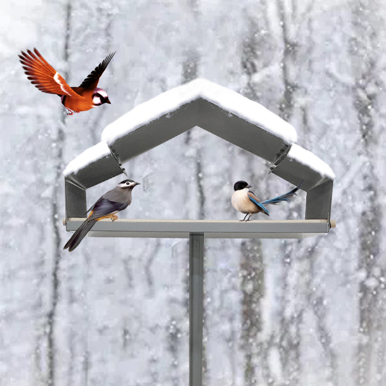 The open design of the bird house offers domestic birds a safe approach, the food is optimally protected from wind and weather.