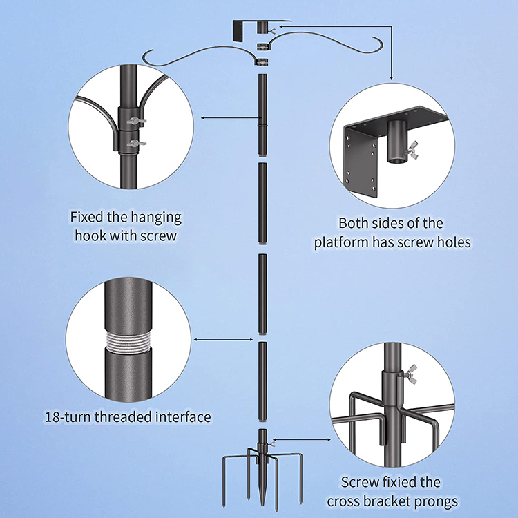 1.The bird feeder poles are made from durable steel material with a powder coated finish for long-lasting strength and rust resistance.
