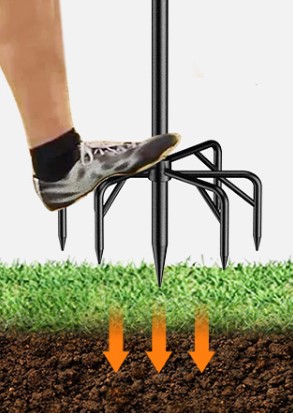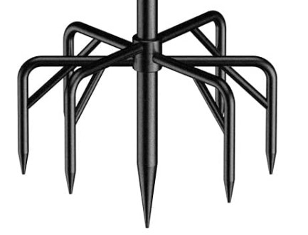 Suitable for outdoor venues such as soil, lawn, beach,etc.The width of the fork is about 9 inch, it covers a large area and can be inserted firmly into the ground and will not fall.