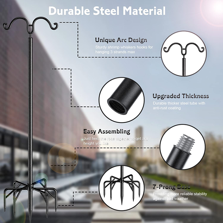 JH-Mech Outdoor String Light Pole Stand Carbon Steel Black Holiday Styling 2 Pack Shrimp Whisker Hooks Design Backyard Light Pole