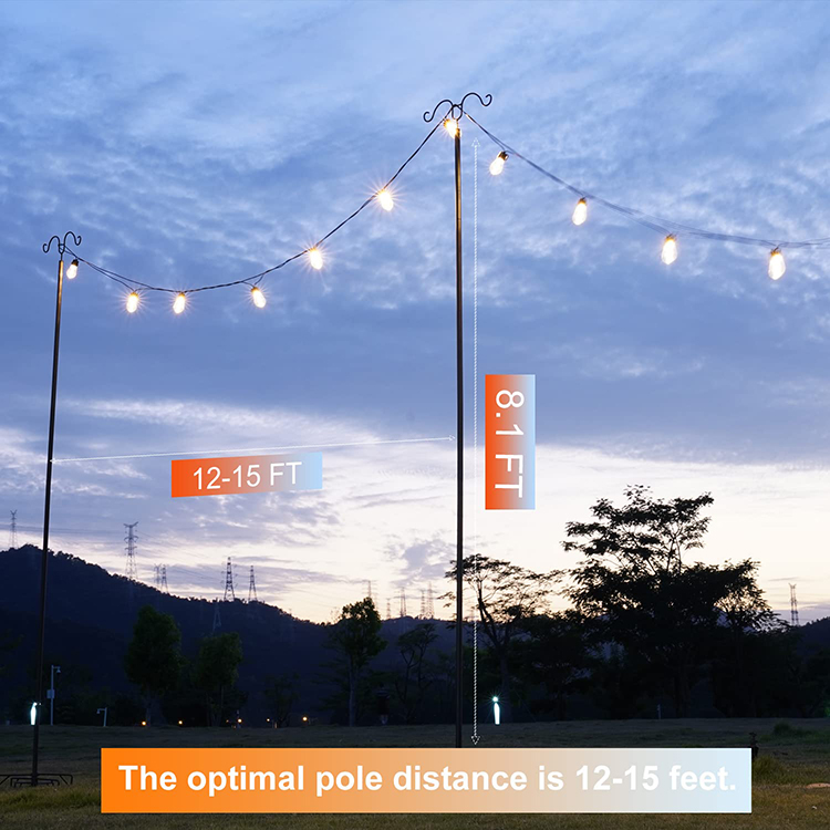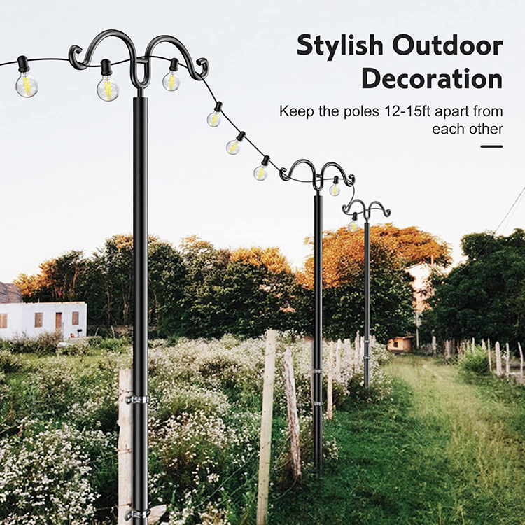 JH-Mech string light pole , which is designed for commercial-grade outdoor string lights or party decorations, is great for your outdoor decoration needs, like hanging string lights, patio lights ,ornaments, party decorations, wind chimes, small hanging plants, fairy lights, flags,Christmas lights, lanterns, mason jars or colorful bunting decorations.