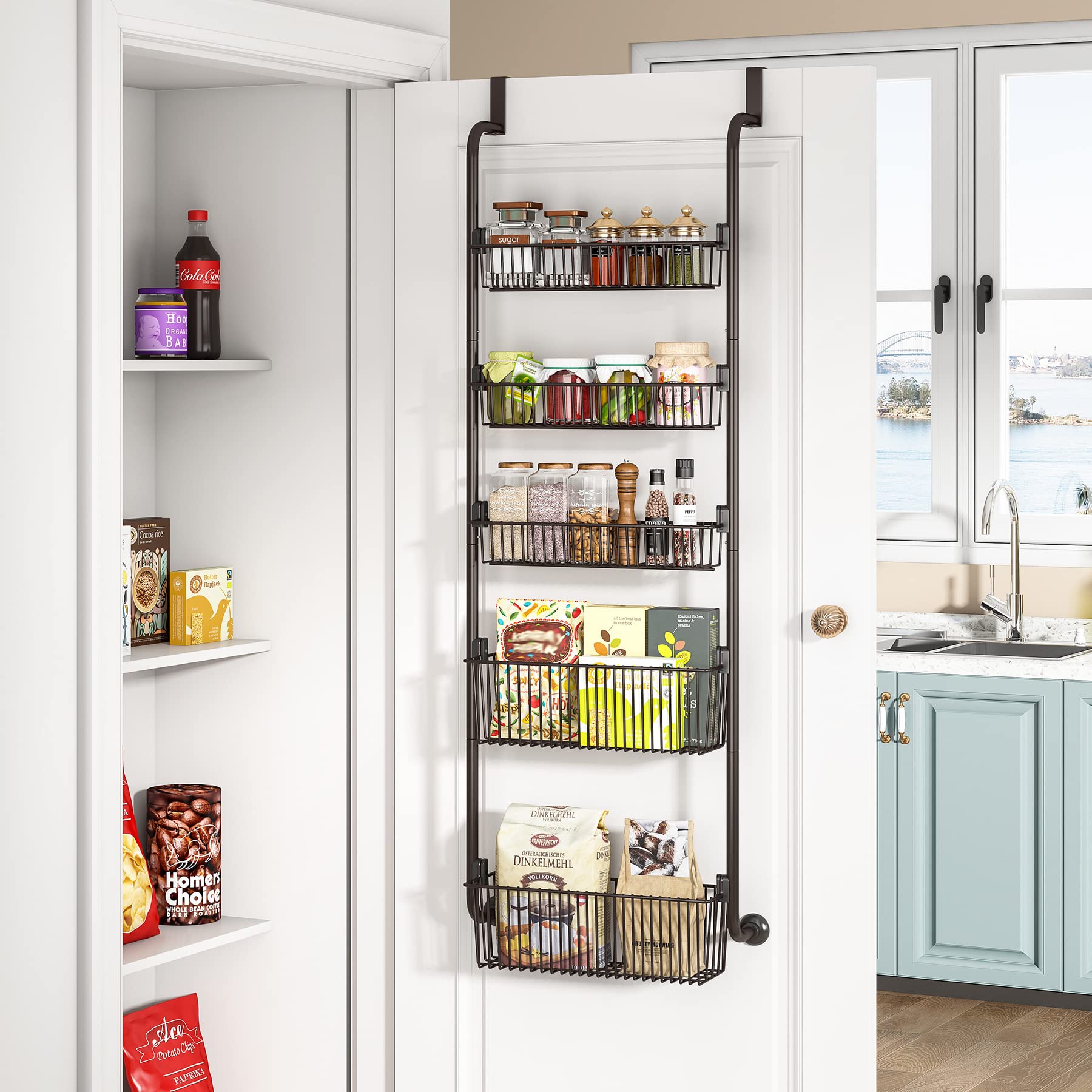 ★5-Tier Pantry Door Storage and Organization Door Shelf Organizer