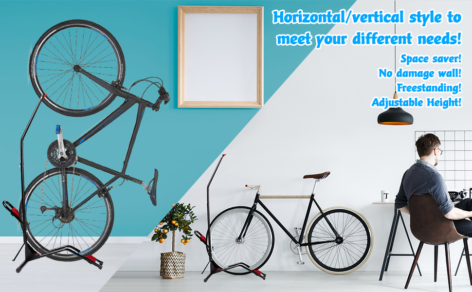 ✔Best Space Saver - Free up 4 feet of your valuable floor space, the bike floor parking stand is a new way to store your bicycle quickly and easily, can free up more valuable space and save floor space.