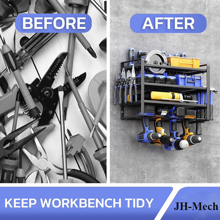 JH-Mech power tool organizer transform that wasted wall space into a compact & efficient power & hand tool storage and display area.Screwdrivers, hand-held power tools, pliers and other common hand tools can be stored efficiently.