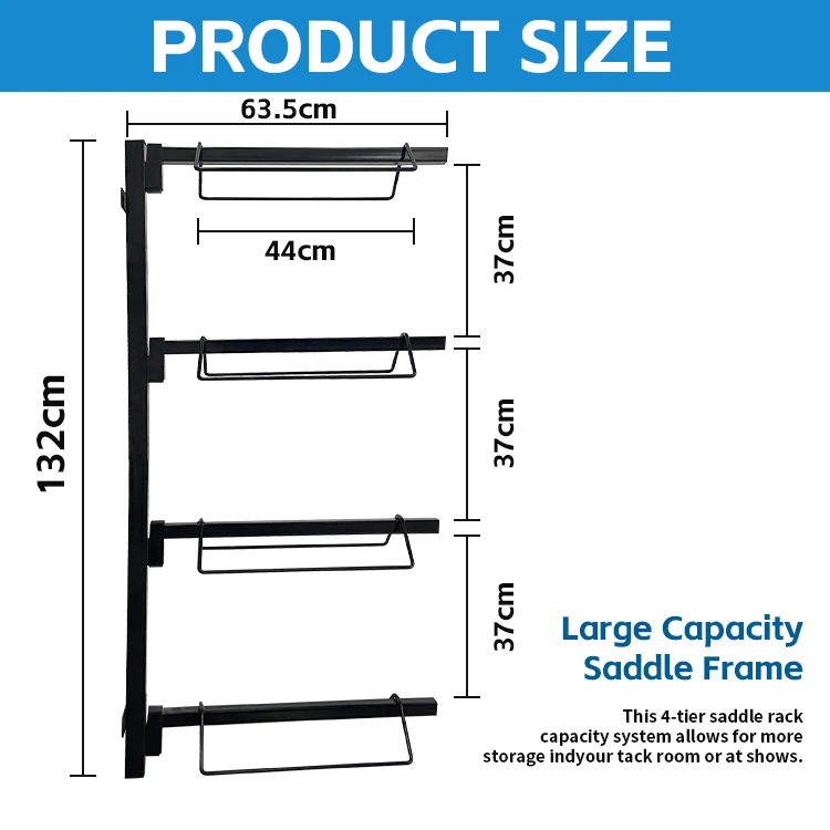 A great space saver for tack rooms at home or at a show. Sturdy upright unit can hold your English or Western saddles effortlessly while leaving room to maneuver. Well balanced, very stable and well built.