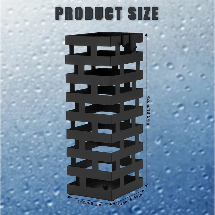 Featuring a durable metal construct and matte black powder-coated finish, this modern umbrellas holder rack keeps your tall umbrellas, smaller umbrellas, or walking sticks neatly organized and stylish. The compact size saves space while keeping your entryway or lobby clutter-free.