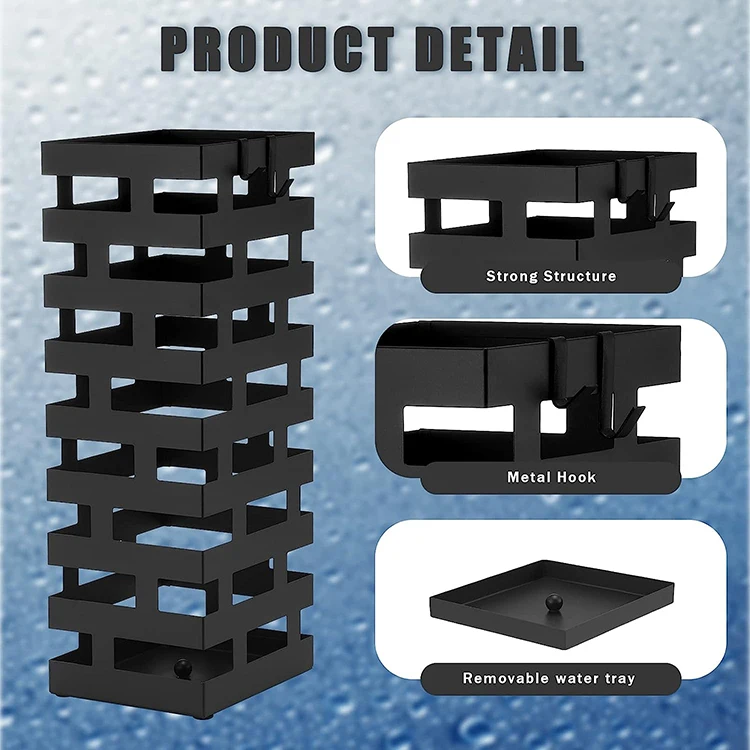 JH-Mech Umbrella Rack Stand Manufacturers Metal Indoor Home Decoration Umbrella Storage Rack with Removable Tray Umbrella Stands
