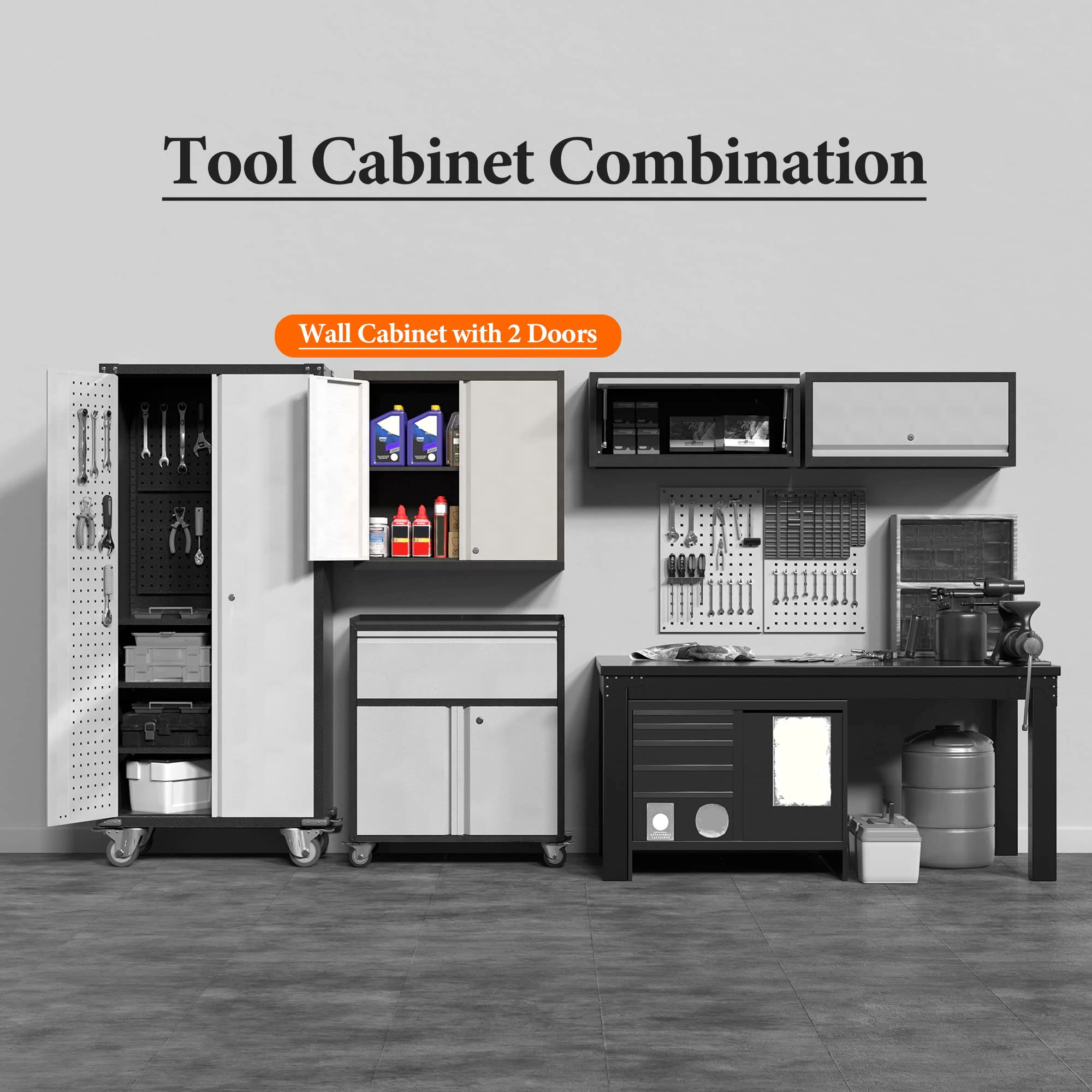 JH-Mech Wall Cabinet Storage Customized Hanging Garage Cabinets Wall Mount Steel Cabinet with 1 Adjustable Shelf
