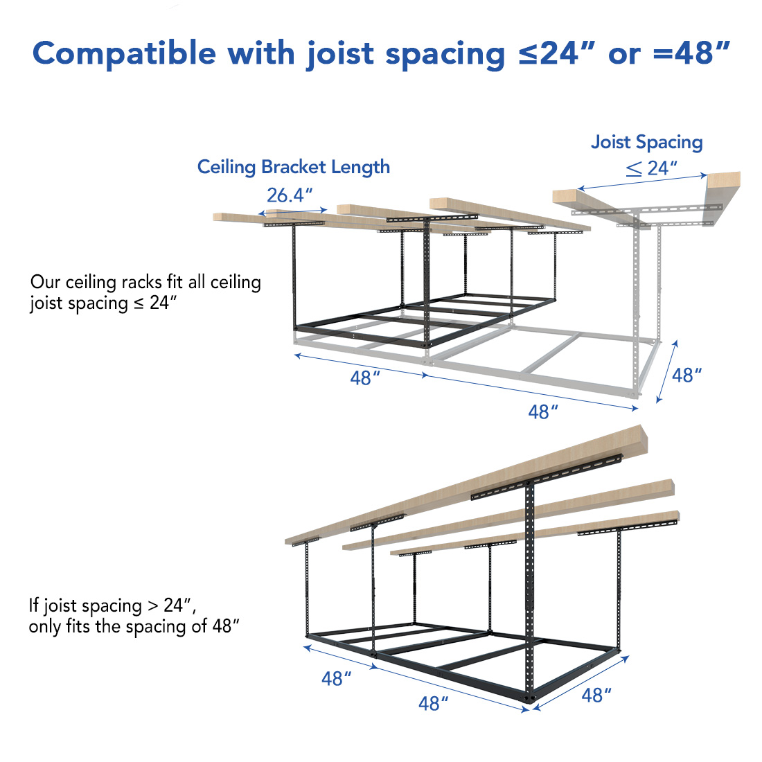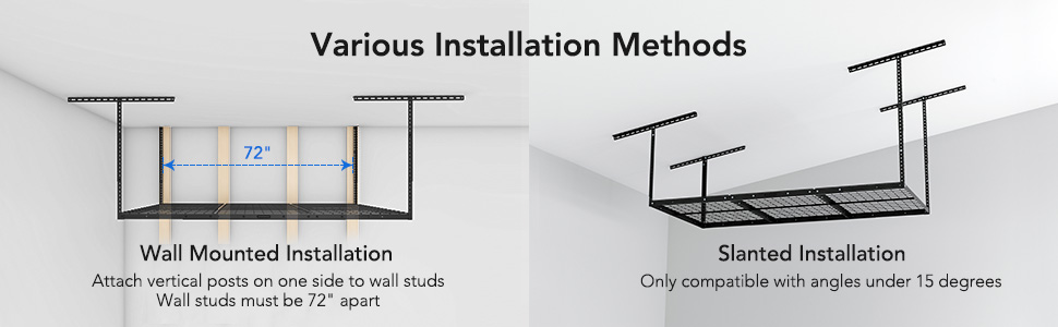 Overhead storage rack makes your garage look neat, and get away from insects and rodents. Height adjustable from 23"to 37" ceiling drop down, so you can customize to your perfect height!